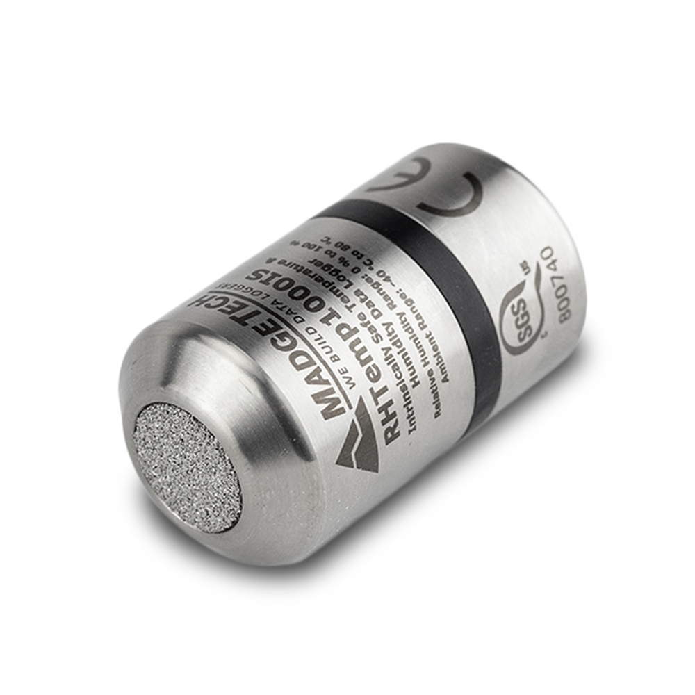 Registrador de temperatura y humedad relativa resistente a alta temperatura en acero inoxidable.