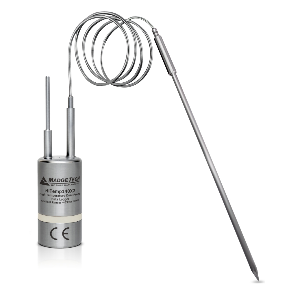Registrador de alta temperatura en acero inoxidable con dos sondas.