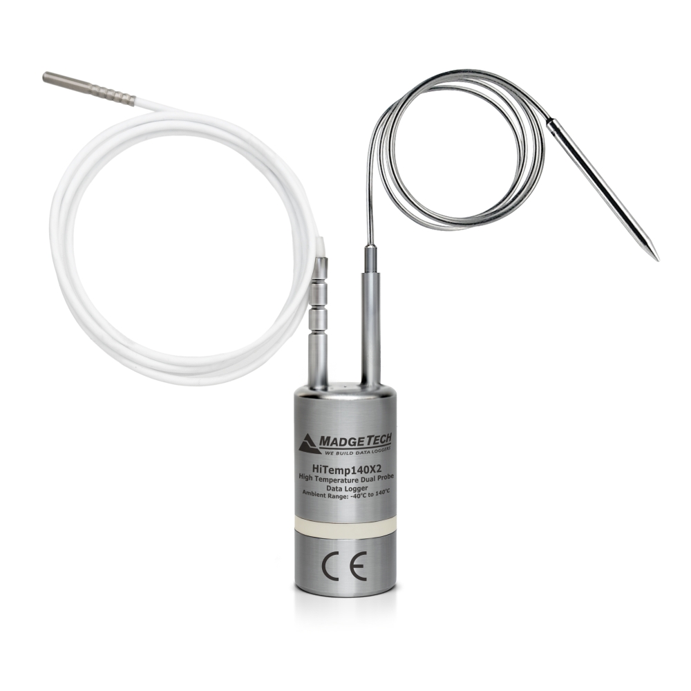 Registrador de alta temperatura en acero inoxidable con dos sondas.